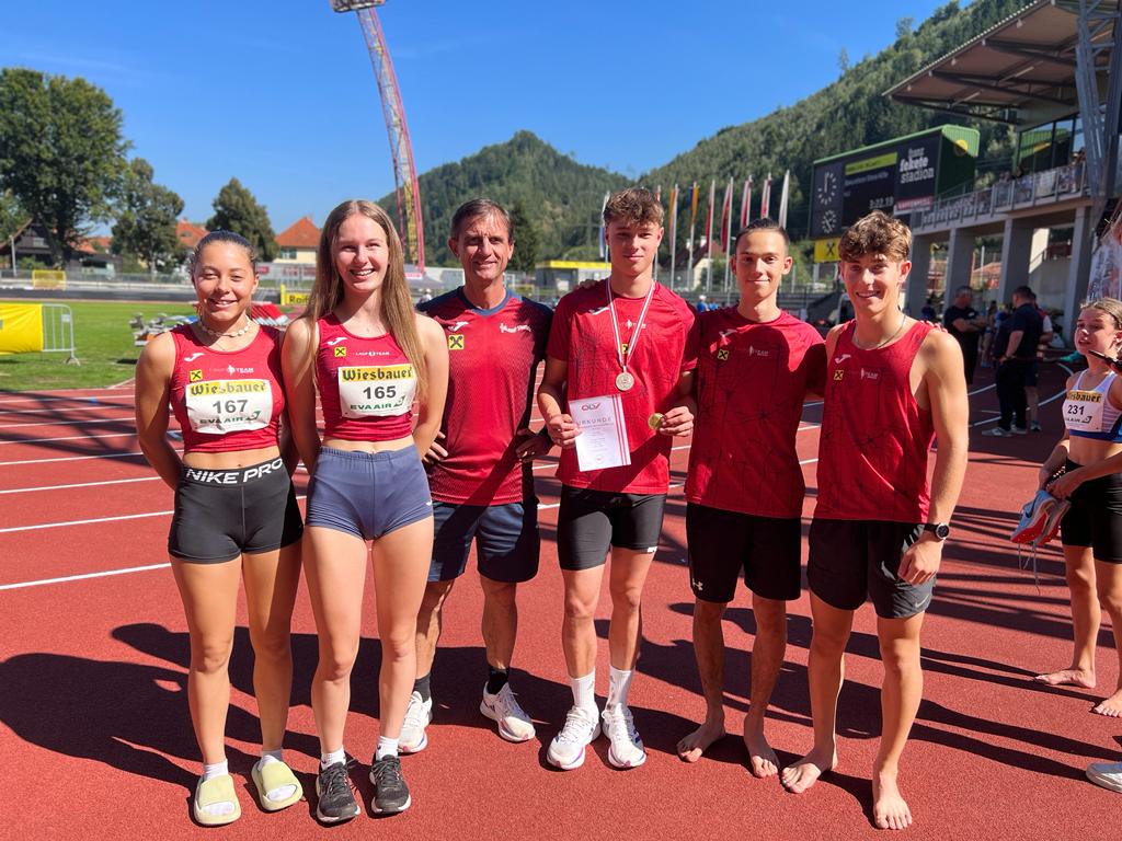 Was für eine Show! Laufteam-Ass Max Baxa vergoldet seine Leistungen bei den Österreichischen Meisterschaften in Kapfenberg gleich dreimal und holt zudem noch einmal Silber. Den überraschendsten Titel gab es wohl im Diskuswurf mit einer neuen PB und burgenländischem Landesrekord (40,82m). Nach einem souveränen Sieg über 100m Hürden (13,80s) – wieder mit PB und Landesrekord – holte er sich sein drittes Gold in einem packenden Finish über 300m (37,06s, PB und Landesrekord) – und das nur Minuten, nachdem er sich im Hochsprung Silber mit einer neuen PB von 1,76m gesichert hatte. Bemerkenswert ist, dass Max in Wurf-, Sprung- und Sprintdisziplinen zur österreichischen Spitze zählt. Kein Wunder also, dass nächstes Jahr der Zehnkampf als großes Ziel ganz oben auf der Bucket List steht.